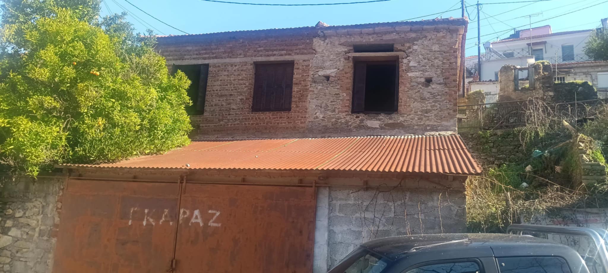 Η μονοκατοικία είναι ημιτελής μέσα σε οικοπεδικό χώρο, με γκαράζ στο κέντρο του χωριού.
